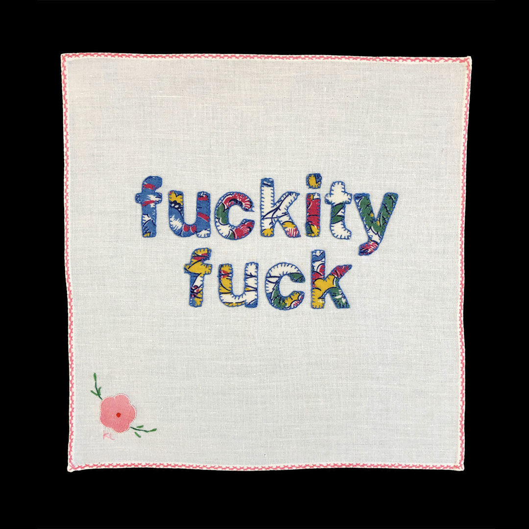 Appliqué on vintage cloth. Cotton, fusible interfacing.